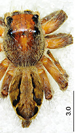 ![]() Fig.: F-31296 Hyllus taysonensis - ♂ - habitus. Scale bar: 2 mm - © HOANG, Q. D. (2025) | ![]() Fig.: F-31297 Hyllus taysonensis - ♀ - habitus. Scale bar: 2 mm - © HOANG, Q. D. (2025) |