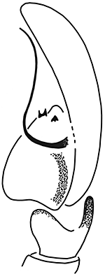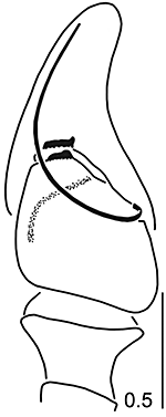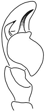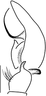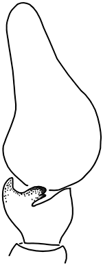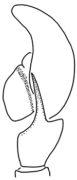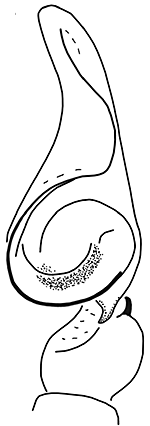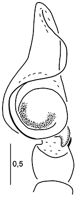 ![]() Fig.: F-25716 Thiratoscirtus tenuis - ♂ - palpal organ, retrolateral view - © WESOŁOWSKA, W. & WIŚNIEWSKI, K. (2023) | |||||||||||