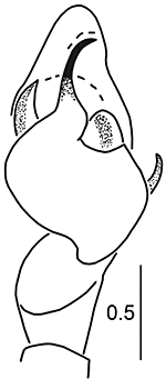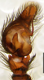 ![]() Fig.: F-30287 Thiratoscirtus spinifer - ♂ - palpal organ, dorsal view - © WIŚNIEWSKI, K. & WESOŁOWSKA, W. (2024) | |||||||||||