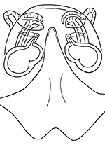 ![]() Fig.: F-34363 Thiratoscirtus torquatus - ♀ - internal structure of epigyne - © WESOŁOWSKA, W., RUSSELL-SMITH, A. & DANFLOUS, S. (2026) | ![]() Fig.: F-3706 Thiratoscirtus torquatus - ♂ - © WESOŁOWSKA, W. & EDWARDS, G. B. (2012) | ||||||||||