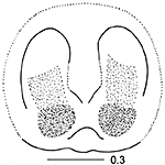 ![]() Fig.: F-30269 Thiratoscirtus africanus - ♀ - epigyne - © WIŚNIEWSKI, K. & WESOŁOWSKA, W. (2024) |