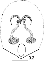 ![]() Fig.: F-10258 Thiratoscirtus mastigophorus - ♀ - epigyne - © WISNIEWSKI, K. & WESOŁOWSKA, W. (2013) |