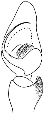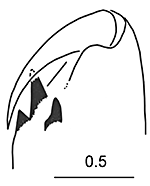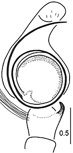 ![]() Fig.: F-30287 Thiratoscirtus spinifer - ♂ - palpal organ, dorsal view - © WIŚNIEWSKI, K. & WESOŁOWSKA, W. (2024) |
