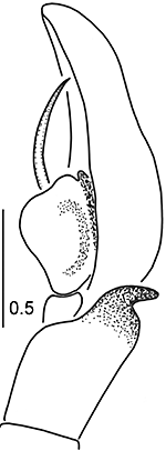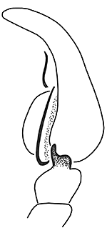 ![]() Fig.: F-25716 Thiratoscirtus tenuis - ♂ - palpal organ, retrolateral view - © WESOŁOWSKA, W. & WIŚNIEWSKI, K. (2023) |