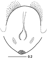 ![]() Fig.: F-27325 Thiratoscirtus iyomii - ♂ - dorsal view. Scale bar: 1 mm - © PETT, B. L., IYOMI, D. M. M. & MBENDE, M. (2024) | ![]() Fig.: F-27326 Thiratoscirtus iyomii - ♂ - lateral view - © PETT, B. L., IYOMI, D. M. M. & MBENDE, M. (2024) | ![]() Fig.: F-27327 Thiratoscirtus iyomii - ♂ - ventral view - © PETT, B. L., IYOMI, D. M. M. & MBENDE, M. (2024) | ![]() Fig.: F-27328 Thiratoscirtus iyomii - ♀ - dorsal view. Scale bar: 1 mm - © PETT, B. L., IYOMI, D. M. M. & MBENDE, M. (2024) | ![]() Fig.: F-27329 Thiratoscirtus iyomii - ♀ - lateral view - © PETT, B. L., IYOMI, D. M. M. & MBENDE, M. (2024) | ![]() Fig.: F-27330 Thiratoscirtus iyomii - ♀ - ventral view - © PETT, B. L., IYOMI, D. M. M. & MBENDE, M. (2024) | ||||||