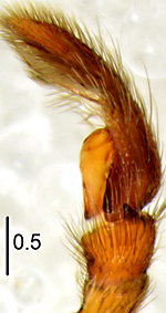 ![]() Fig.: F-25710 Thiratoscirtus tenuis - ♂ - general appearance, dorsal view - © WESOŁOWSKA, W. & WIŚNIEWSKI, K. (2023) | ![]() Fig.: F-25711 Thiratoscirtus tenuis - ♂ - general appearance, lateral view - © WESOŁOWSKA, W. & WIŚNIEWSKI, K. (2023) | ![]() Fig.: F-25712 Thiratoscirtus tenuis - ♂ - leg I - © WESOŁOWSKA, W. & WIŚNIEWSKI, K. (2023) | ![]() Fig.: F-25713 Thiratoscirtus tenuis - ♂ - palpal organ, prolateral view - © WESOŁOWSKA, W. & WIŚNIEWSKI, K. (2023) | ![]() Fig.: F-25714 Thiratoscirtus tenuis - ♂ - palpal organ, ventral view - © WESOŁOWSKA, W. & WIŚNIEWSKI, K. (2023) | ![]() Fig.: F-25715 Thiratoscirtus tenuis - ♂ - palpal organ, prolateral view - © WESOŁOWSKA, W. & WIŚNIEWSKI, K. (2023) | ||||||