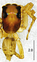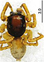 ![]() Fig.: F-30281 Thiratoscirtus spinifer - ♂ - general appearance, dorsal view - © WIŚNIEWSKI, K. & WESOŁOWSKA, W. (2024) | ![]() Fig.: F-30282 Thiratoscirtus spinifer - ♂ - general appearance, dorsolateral view - © WIŚNIEWSKI, K. & WESOŁOWSKA, W. (2024) | ![]() Fig.: F-30283 Thiratoscirtus spinifer - ♂ - general appearance, frontal view - © WIŚNIEWSKI, K. & WESOŁOWSKA, W. (2024) | ![]() Fig.: F-30284 Thiratoscirtus spinifer - ♂ - palpal organ, ventral view. Scale bar: 0.5 mm - © WIŚNIEWSKI, K. & WESOŁOWSKA, W. (2024) | ![]() Fig.: F-30285 Thiratoscirtus spinifer - ♂ - palpal organ, ventrolateral view - © WIŚNIEWSKI, K. & WESOŁOWSKA, W. (2024) | ![]() Fig.: F-30286 Thiratoscirtus spinifer - ♂ - palpal organ, lateral view - © WIŚNIEWSKI, K. & WESOŁOWSKA, W. (2024) | ||||||