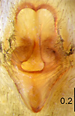 ![]() Fig.: F-27335 Thiratoscirtus khonvoum - ♀ - dorsal view. Scale bar: 1 mm - © PETT, B. L., IYOMI, D. M. M. & MBENDE, M. (2024) | ![]() Fig.: F-27336 Thiratoscirtus khonvoum - ♀ - lateral view - © PETT, B. L., IYOMI, D. M. M. & MBENDE, M. (2024) | ![]() Fig.: F-27337 Thiratoscirtus khonvoum - ♀ - ventral view - © PETT, B. L., IYOMI, D. M. M. & MBENDE, M. (2024) | ![]() Fig.: F-27338 Thiratoscirtus khonvoum - ♀ - epigyne, ventral view - © PETT, B. L., IYOMI, D. M. M. & MBENDE, M. (2024) | ||||