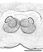 Macaroeris musae - ♀ - epigyne, ventral view. Scale: 0.1 mm - Portugal: Madeira
