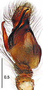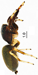 ![]() SZÜTS, T. & ROLLARD, C. (2007)Redescription of the genus Tarne SIMON, 1886 (Araneae: Salticidae) Insect Syst. Evol. 38: 427-432 Tarne dives - ♂ - habitus, dorso-lateral view - country undefined ![]() SZÜTS, T. & ROLLARD, C. (2007)Redescription of the genus Tarne SIMON, 1886 (Araneae: Salticidae) Insect Syst. Evol. 38: 427-432 Tarne dives - ♂ - carapace, dorsal view - country undefined ![]() SZÜTS, T. & ROLLARD, C. (2007)Redescription of the genus Tarne SIMON, 1886 (Araneae: Salticidae) Insect Syst. Evol. 38: 427-432 Tarne dives - ♂ - face, anterio-lateral view - country undefined ![]() SZÜTS, T. & ROLLARD, C. (2007)Redescription of the genus Tarne SIMON, 1886 (Araneae: Salticidae) Insect Syst. Evol. 38: 427-432 Tarne dives - ♀ - habitus, dorsal view - country undefined ![]() SZÜTS, T. & ROLLARD, C. (2007)Redescription of the genus Tarne SIMON, 1886 (Araneae: Salticidae) Insect Syst. Evol. 38: 427-432 Tarne dives - ♀ - carapace, dorsal view - country undefined ![]() SZÜTS, T. & ROLLARD, C. (2007)Redescription of the genus Tarne SIMON, 1886 (Araneae: Salticidae) Insect Syst. Evol. 38: 427-432 Tarne dives - ♀ - face, anterio-lateral view - country undefined ![]() WESOŁOWSKA, W. & EDWARDS, G. B. (2012)Jumping spiders (Araneae: Salticidae) of the Calabar area (SE Nigeria) Ann. Zool., Warszawa 62 (4): 733-772 Tarne dives - ♂ - Nigeria ![]() WESOŁOWSKA, W. & HENRARD, A. (2025)New data on the jumping spiders (Araneae: Salticidae) from the Nimba Mountains, Guinea Ann. Zool., Warszawa 75 (3): 811-912 Tarne dives - ♂ - habitus, dorsal view - Guinea ![]() WESOŁOWSKA, W. & HENRARD, A. (2025)New data on the jumping spiders (Araneae: Salticidae) from the Nimba Mountains, Guinea Ann. Zool., Warszawa 75 (3): 811-912 Tarne dives - ♂ - habitus, frontal view - Guinea ![]() WESOŁOWSKA, W. & HENRARD, A. (2025)New data on the jumping spiders (Araneae: Salticidae) from the Nimba Mountains, Guinea Ann. Zool., Warszawa 75 (3): 811-912 Tarne dives - ♂ - habitus, lateral view - Guinea ![]() WESOŁOWSKA, W. & HENRARD, A. (2025)New data on the jumping spiders (Araneae: Salticidae) from the Nimba Mountains, Guinea Ann. Zool., Warszawa 75 (3): 811-912 Tarne dives - ♀ - habitus, dorsal view - Guinea ![]() WESOŁOWSKA, W. & HENRARD, A. (2025)New data on the jumping spiders (Araneae: Salticidae) from the Nimba Mountains, Guinea Ann. Zool., Warszawa 75 (3): 811-912 Tarne dives - ♀ - habitus, frontal view - Guinea ![]() WESOŁOWSKA, W. & HENRARD, A. (2025)New data on the jumping spiders (Araneae: Salticidae) from the Nimba Mountains, Guinea Ann. Zool., Warszawa 75 (3): 811-912 Tarne dives - ♀ - habitus, lateral view - Guinea ![]() WESOŁOWSKA, W. & HENRARD, A. (2025)New data on the jumping spiders (Araneae: Salticidae) from the Nimba Mountains, Guinea Ann. Zool., Warszawa 75 (3): 811-912 Tarne dives - ♂ - Guinea ![]() WESOŁOWSKA, W. & HENRARD, A. (2025)New data on the jumping spiders (Araneae: Salticidae) from the Nimba Mountains, Guinea Ann. Zool., Warszawa 75 (3): 811-912 Tarne dives - ♂ - Guinea ![]() WESOŁOWSKA, W. & HENRARD, A. (2025)New data on the jumping spiders (Araneae: Salticidae) from the Nimba Mountains, Guinea Ann. Zool., Warszawa 75 (3): 811-912 Tarne dives - ♀ - Guinea ![]() WESOŁOWSKA, W. & HENRARD, A. (2025)New data on the jumping spiders (Araneae: Salticidae) from the Nimba Mountains, Guinea Ann. Zool., Warszawa 75 (3): 811-912 Tarne dives - ♀ - Guinea ![]() SZÜTS, T. & ROLLARD, C. (2007)Redescription of the genus Tarne SIMON, 1886 (Araneae: Salticidae) Insect Syst. Evol. 38: 427-432 Tarne dives - ♂ - palp, prolateral view - country undefined ![]() SZÜTS, T. & ROLLARD, C. (2007)Redescription of the genus Tarne SIMON, 1886 (Araneae: Salticidae) Insect Syst. Evol. 38: 427-432 Tarne dives - ♂ - palp, ventral view - country undefined ![]() WESOŁOWSKA, W. & HENRARD, A. (2025)New data on the jumping spiders (Araneae: Salticidae) from the Nimba Mountains, Guinea Ann. Zool., Warszawa 75 (3): 811-912 Tarne dives - ♂ - palpal organ, prolateral view - Guinea ![]() WESOŁOWSKA, W. & HENRARD, A. (2025)New data on the jumping spiders (Araneae: Salticidae) from the Nimba Mountains, Guinea Ann. Zool., Warszawa 75 (3): 811-912 Tarne dives - ♂ - palpal organ, ventral view - Guinea ![]() WESOŁOWSKA, W. & HENRARD, A. (2025)New data on the jumping spiders (Araneae: Salticidae) from the Nimba Mountains, Guinea Ann. Zool., Warszawa 75 (3): 811-912 Tarne dives - ♂ - palpal organ, retrolateral view - Guinea ![]() WESOŁOWSKA, W. & HENRARD, A. (2025)New data on the jumping spiders (Araneae: Salticidae) from the Nimba Mountains, Guinea Ann. Zool., Warszawa 75 (3): 811-912 Tarne dives - ♀ - epigyne - Guinea |