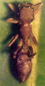 ![]() BISWAS, V. (2025)Ant-mimicking jumping spiders of genus Myrmarachne of Bangladesh (Araneae: Salticidae: Myrmarachninae) Serket, Cairo 21 (1): 110-117 Myrmarachne nonigopali - ♂ - habitus, dorsal view - Bangladesh HOLOTYPE |